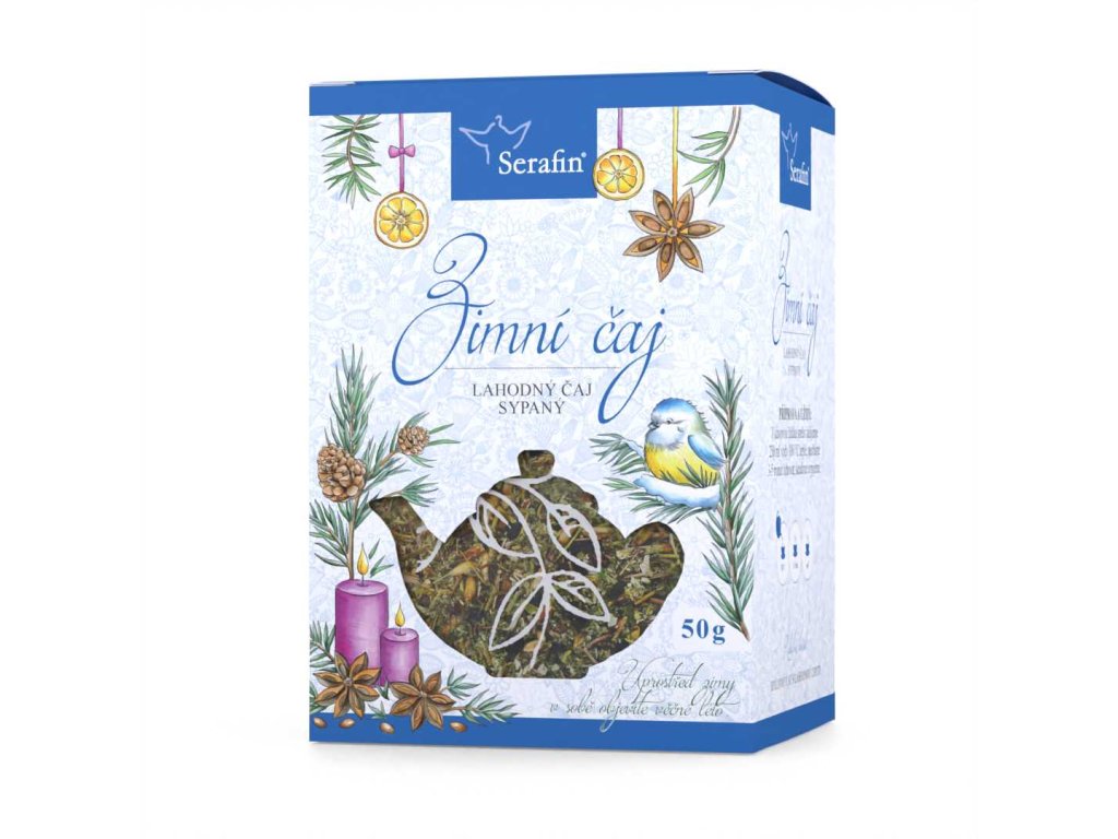 Serafin Zimní čaj 50 g - Černý čaj s bylinami a přírodním aromatem svařeného vína vás příjemně zahřeje během dlouhých zimních dní.
