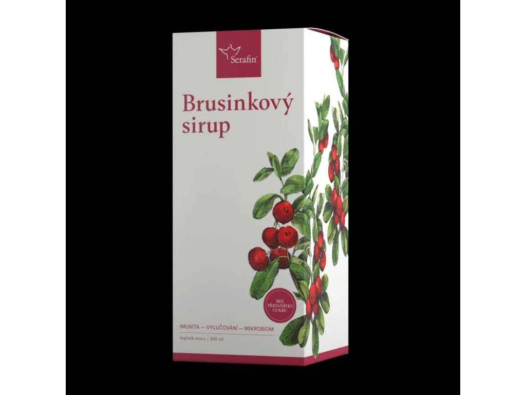Serafin Brusinkový sirup 200ml - Extra silný sirup s obsahem brusinek, D-manózy, extraktu z chagy sibiřské a jitrocele kopinatého. Podporuje přirozenou imunitu, mikrobiální rovnováhu a vylučování.