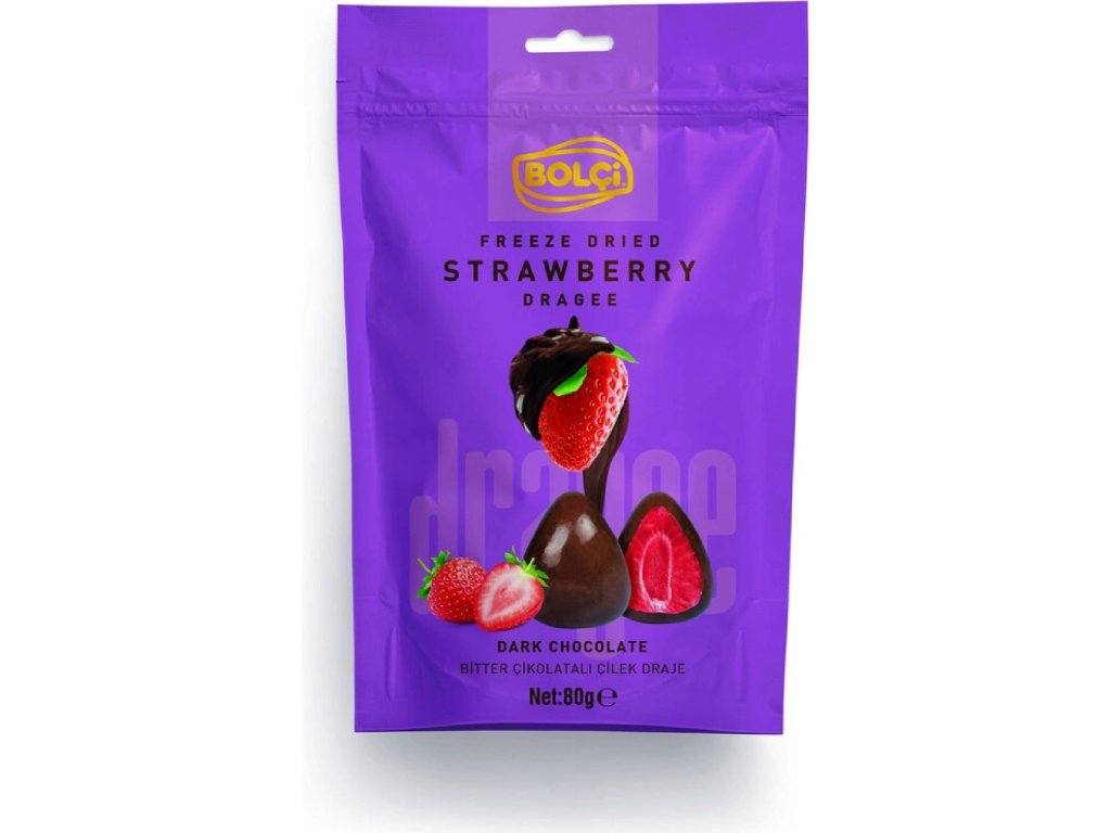 Bolci - lyofilizované celé jahody v hořké čokoládě 80g - sáček