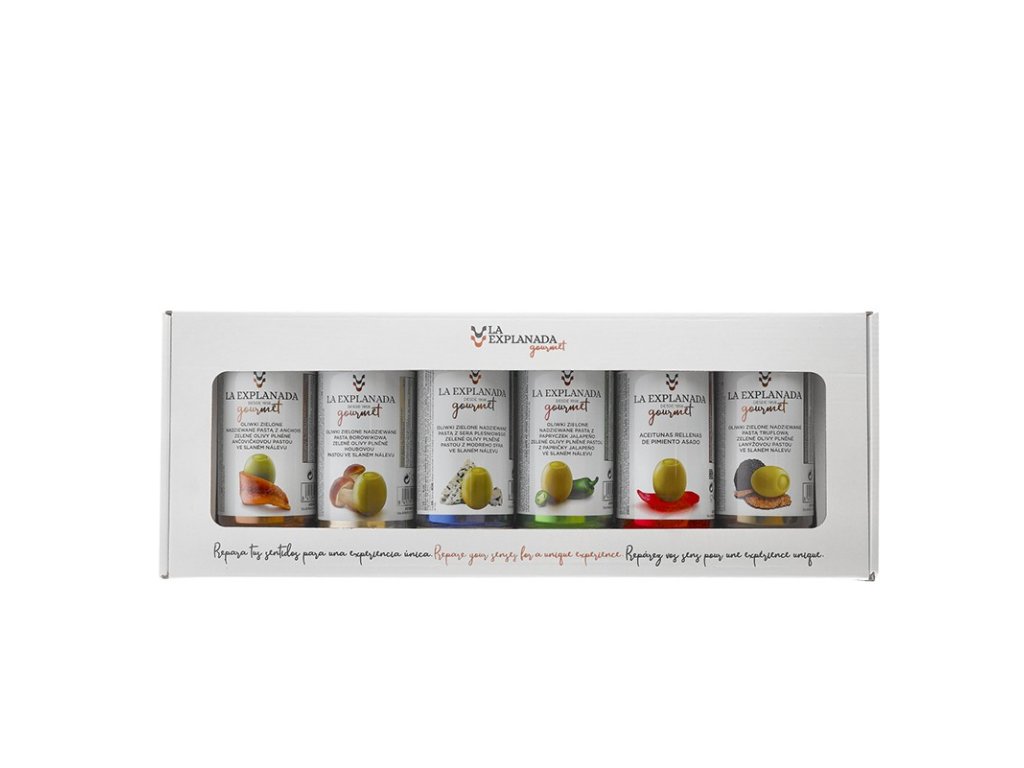 La Explanada dárkový set různých druhů oliv v plechu 6x350g