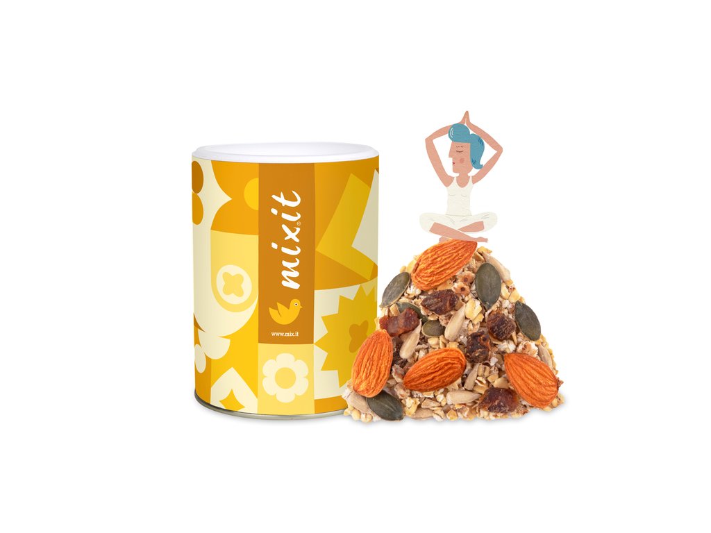 Ajurvéda je tradiční indický systém medicíny, který se zabývá léčbou těla, duše a mysli. A Mixit ordinuje müsli! Při mixování jsme vycházeli z blahodárných účinků všech použitých surovin. Zahřeje vás skořice, betaglukany a vlákninu dodají bezlepkové ovesné a pohankové vločky, dýňová semínka vás nabijí minerály včetně fosforu, hořčíku a manganu. Slunečnice obsahují vitamín E, hořčík a mastné kyseliny linolové. Meruňka vše osladí bez nutnosti přidávat cukr a o bílkoviny se postarají mandle. Dobrou chuť.