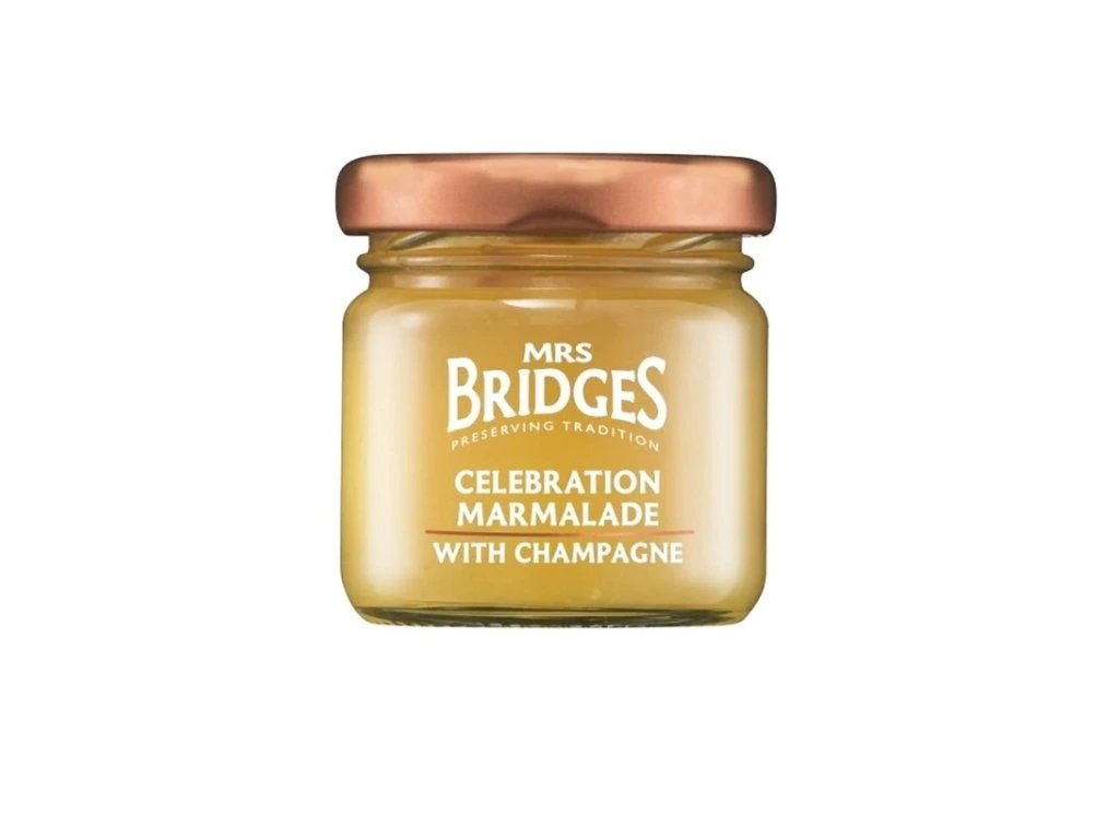 Mrs. Bridges zavařenina Pomeranč se šampaňským 42g - Slavnostní pomerančová zavařenina se špetkou šampaňského, které ji dodává francouzskou jiskru a šarm. Roztomilá malá sklenička s obsahem 42g vypadá skvěle v dárkovém balíčku, můžete si ji vzít sebou na cesty, nebo potěšit u snídaně někoho blízkého.