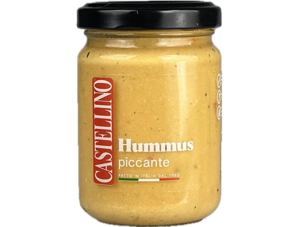Ortomio Pikantní hummus 135g. Za produktem stojí renomovaná značka Castellino, která je známá kvalitními italskými lahůdkami. Castellino s dlouhou tradicí a vášní pro autentickou chuť kombinuje prvotřídní ingredience a vytváří osobité produkty. Složení: cizrna (EU, mimo EU), 66%, voda, slunečnicový olej, česnek, sůl, chilli paprička 1%, koření, regulátor kyselosti: kyselina mléčná, antioxidant: kyselina laskorbová. Může obsahovat PŠENICE, MLÉKO, TUŇÁK, MANDLE A KEŠU. Bez konzervantů, bez GMO, bez barviv.